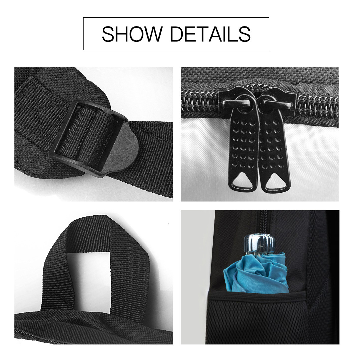 - Bolsos laterais em ambos os lados da mochila que podem ser usados para transportar copos, guarda-chuvas e outros itens.